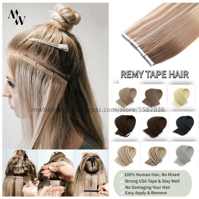 Mw Double Drawn Remy Tape In Human Hair Extensions 100 Real Skin Weft Adhesive Glue On Seamless Natural Hair 16 20 24 Inches Tape Hair Extensions Aliexpress